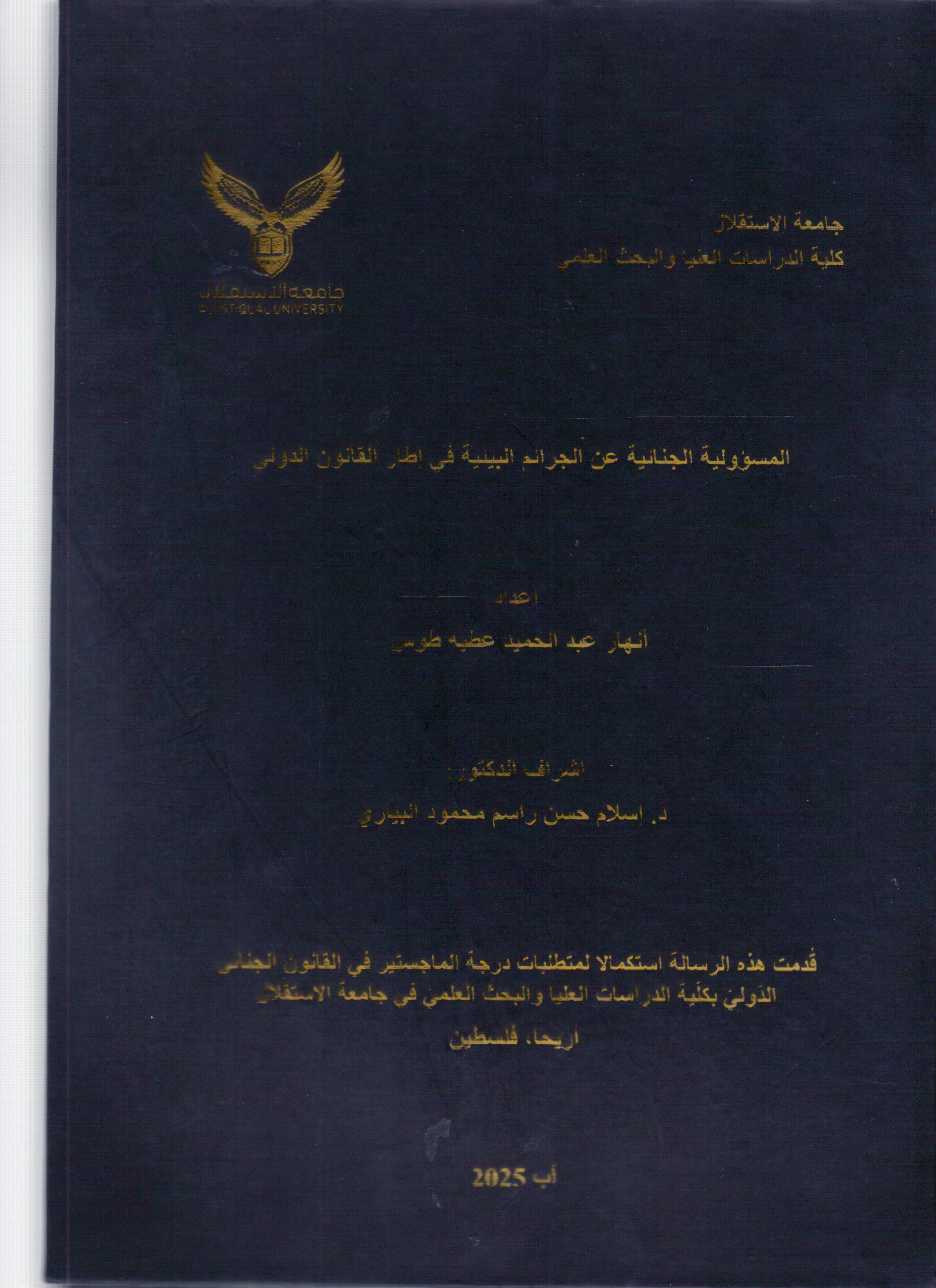 | العنوان | المسؤولية الجنائية عن الجرائم البيئية في اطار القانون الدولي |