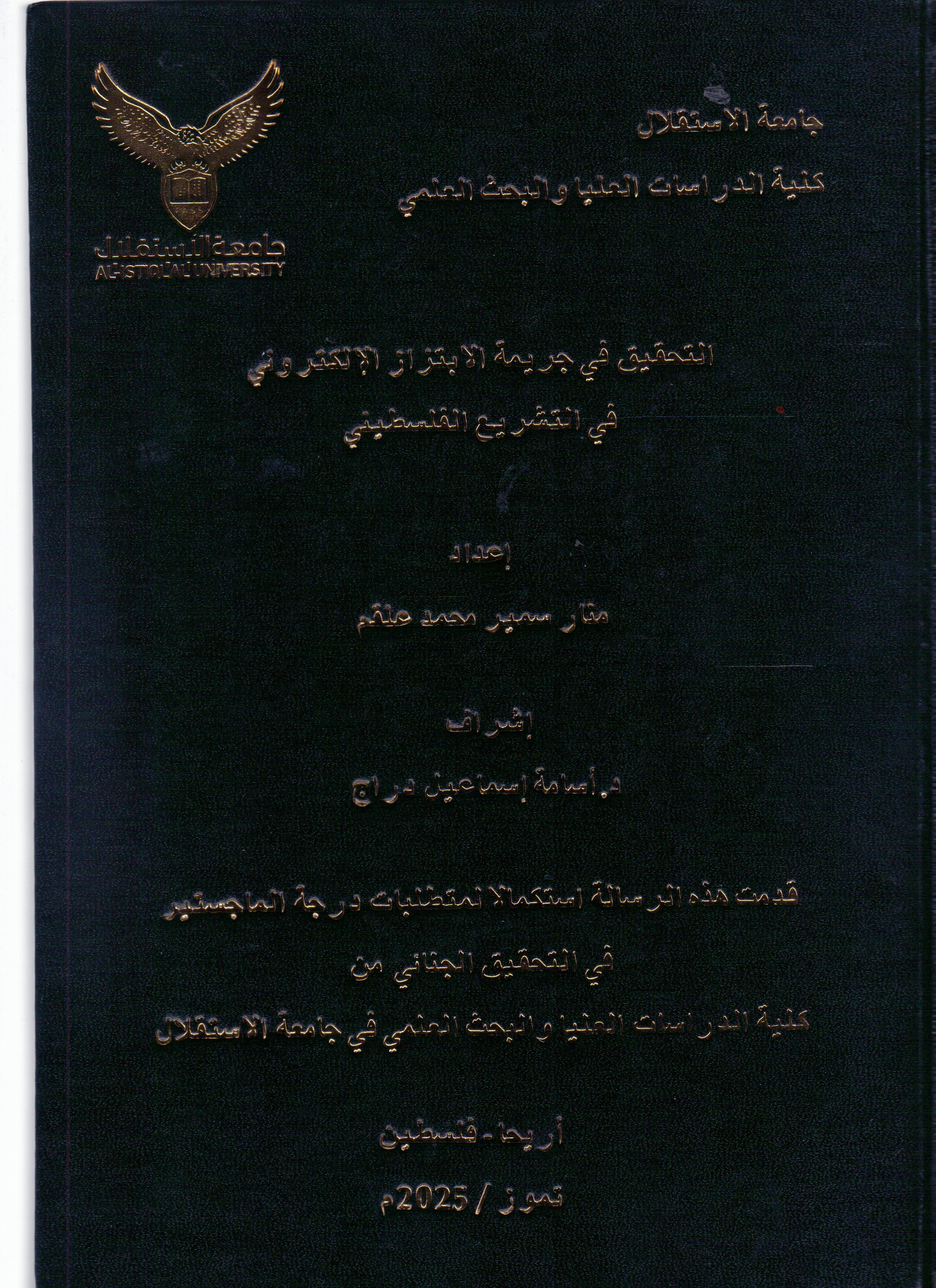 | Title | التحقيق في جريمة الابتزاز الالكتروني في التشريع الفلسطيني |