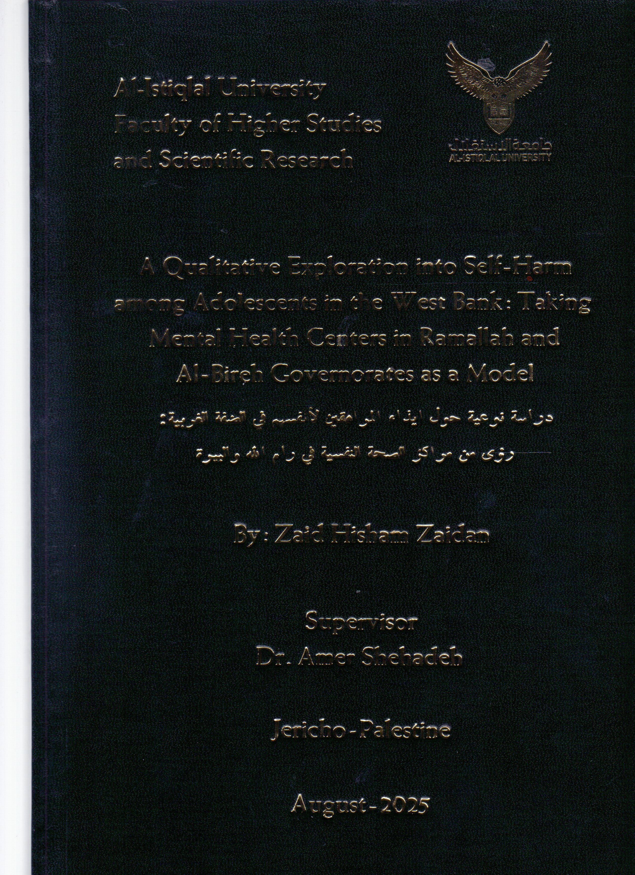 A Qualitative Exploration into Self-Harm among Adolescents in the West Bank : Taking Mental Health Centers in Ramallah and Al-Bireh Governorates as a Model