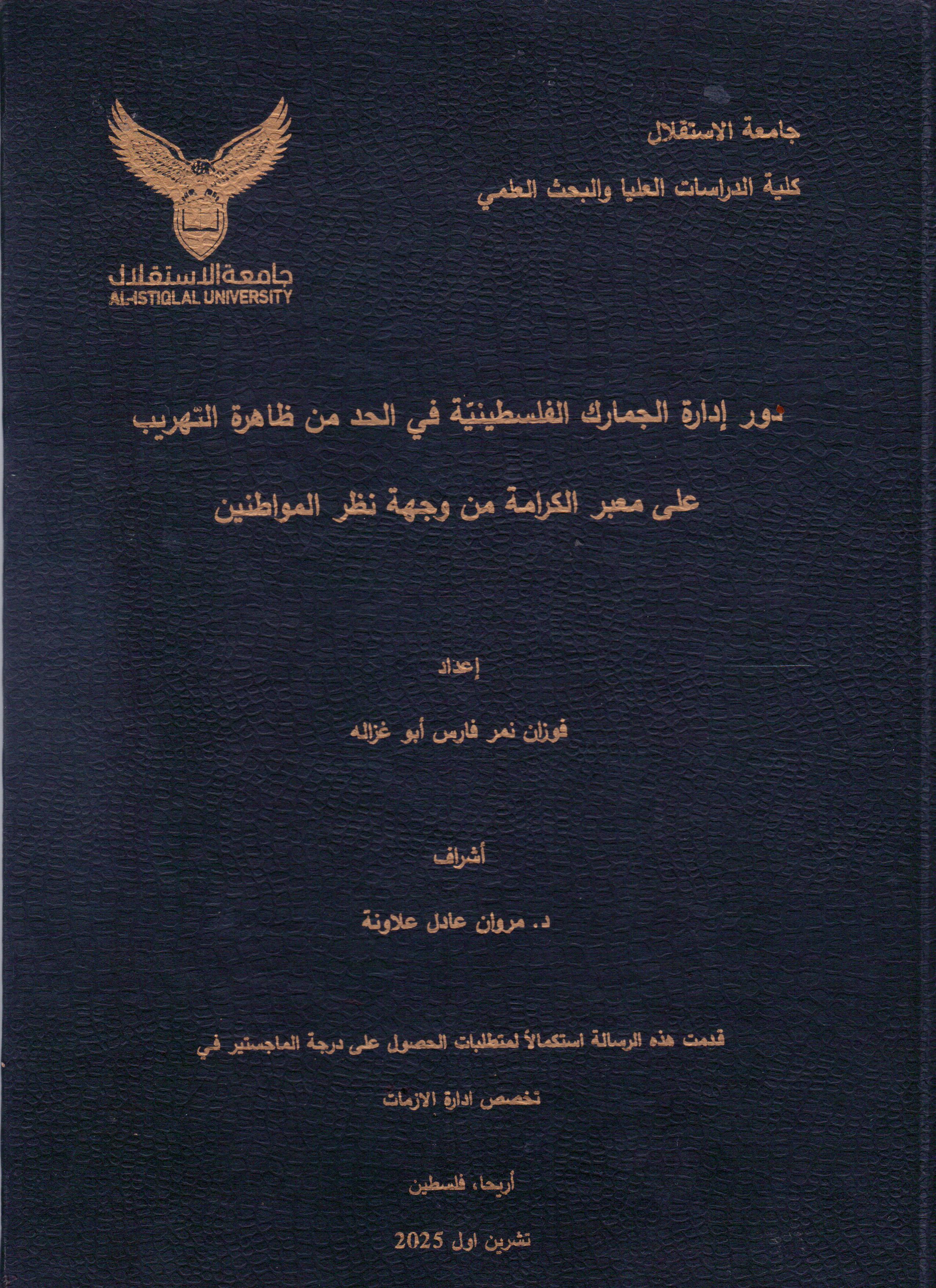 | Title | دور ادارة الجمارك الفلسطينية في الحد من ظاهرة التهريب على معبر الكرامة من وجهة مظر المواطنين |