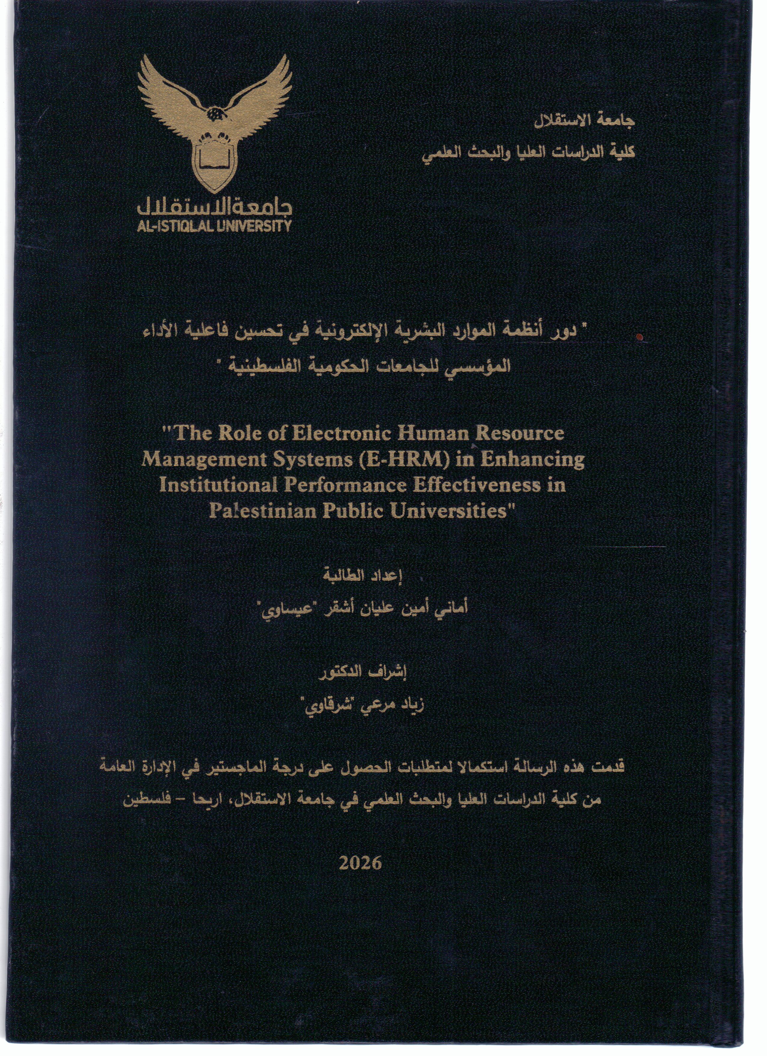 دور انظمة الموارد البشرية الالكترونية في تحسين فاعلية الاداء المؤسسي للجامعات الحكومية الفلسطينية ر / 351.1 / د و ر