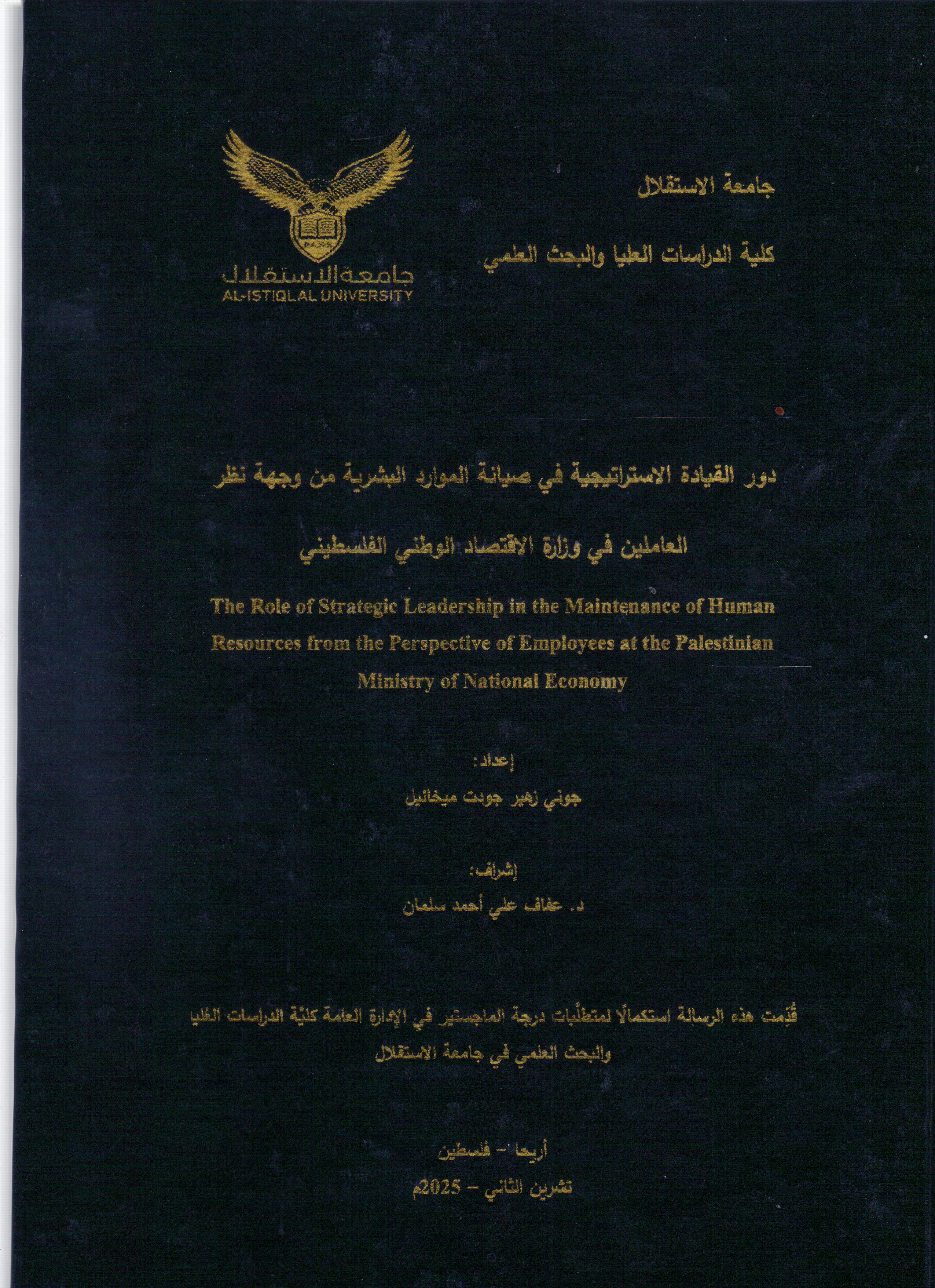 دور القيادة الاستراتيجية في صيانة الموارد البشرية من وجهة نظر العاملين في وزارة الاقتصاد الوطني الفلسطيني ر / 658.4 / د و ر