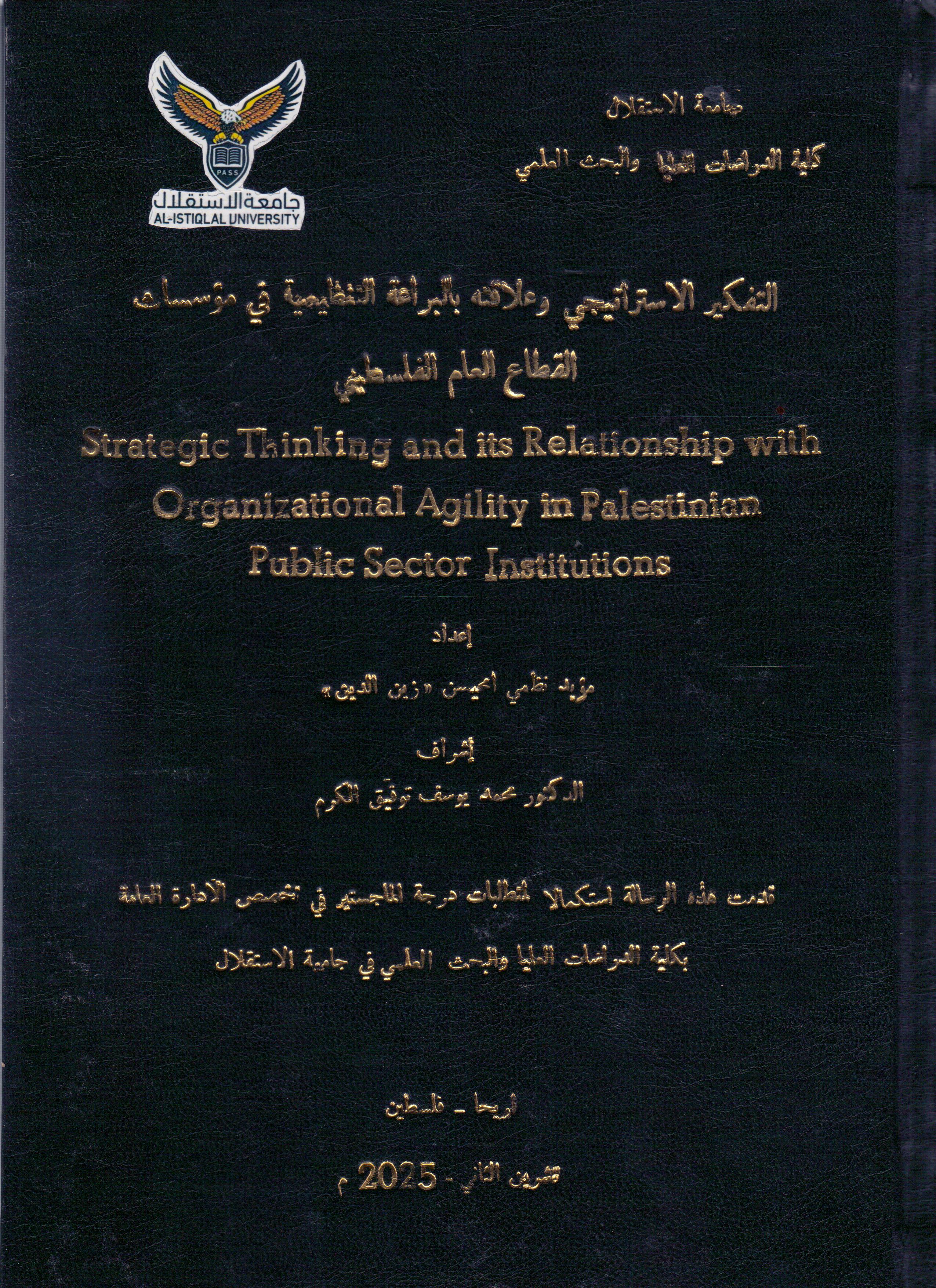 - التفكير الاستراتيجي وعلاقته بالاداء الوظيفي في وزارة التربية والتعليم الفلسطينية