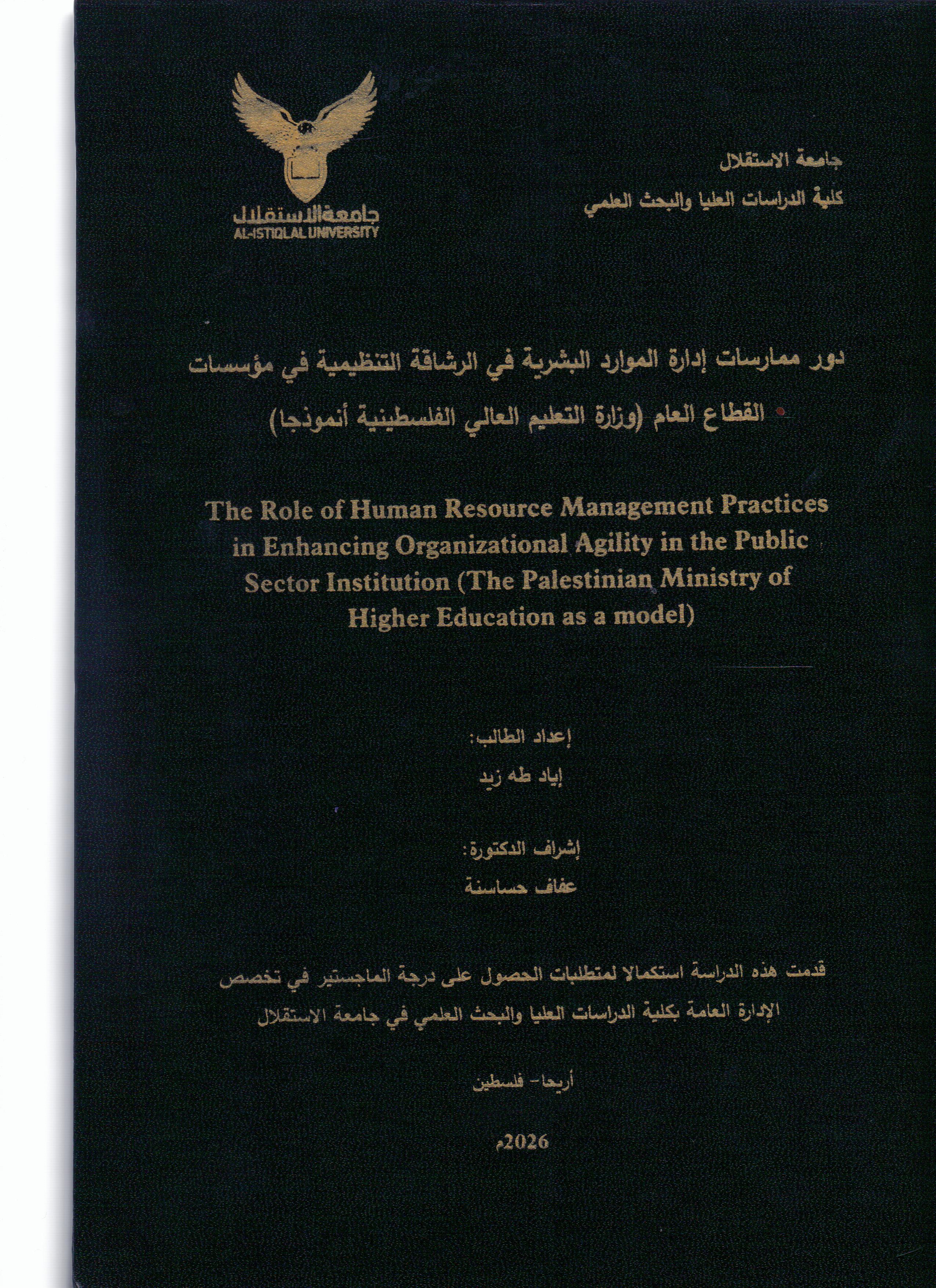 دور ممارسات ادارة الموارد البشرية في الرشاقة التنظيمية في مؤسسات القطاع العام( وزارة التعليم العالي الفلسطينية انموذجا)